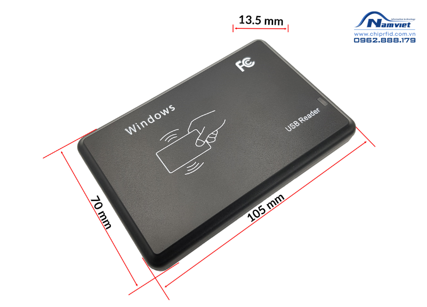 - Với thiết kế nhỏ gọn, chống nước, có khả năng đọc các loại thẻ RFID ở tần số 125KHz. Đầu đọc cấp nguồn thông qua cổng USB và giao tiếp theo chuẩn USB