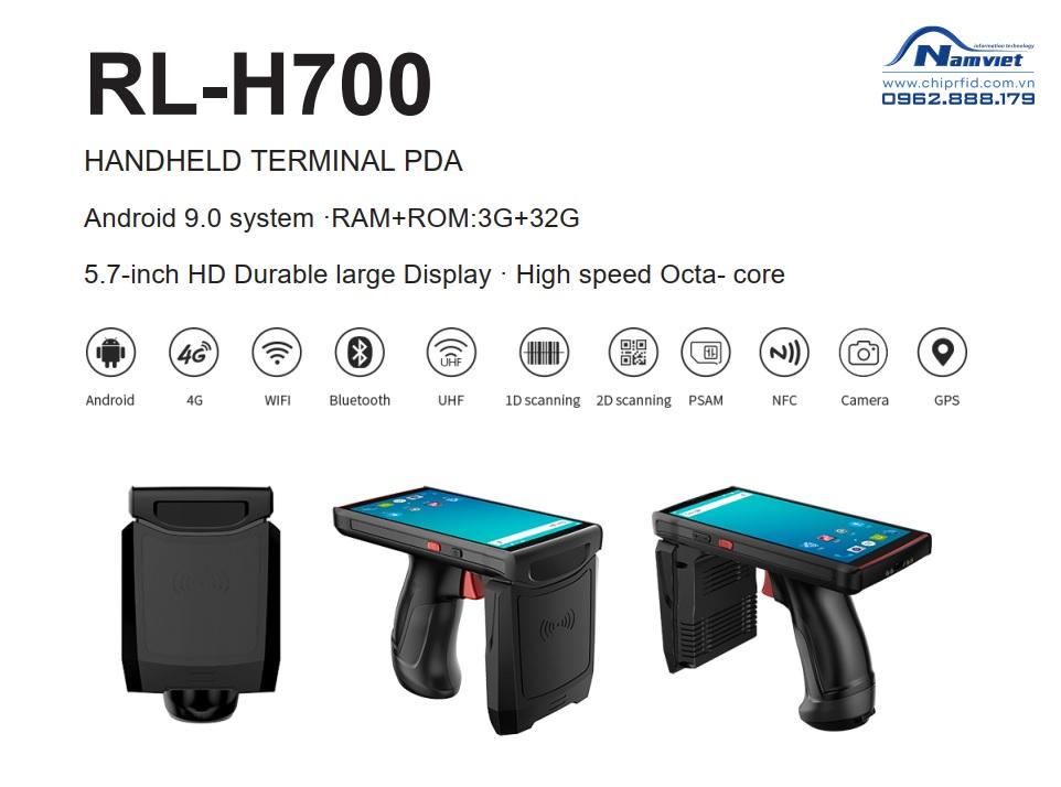 - RL-H700 là một máy quét RFID di động cầm tay chắc chắn hoạt động trên nền tảng Android với bộ vi xử lý mạnh mẽ, pin 5000mAh và khả năng hoạt động trên tần số UHF RFID vượt trội.