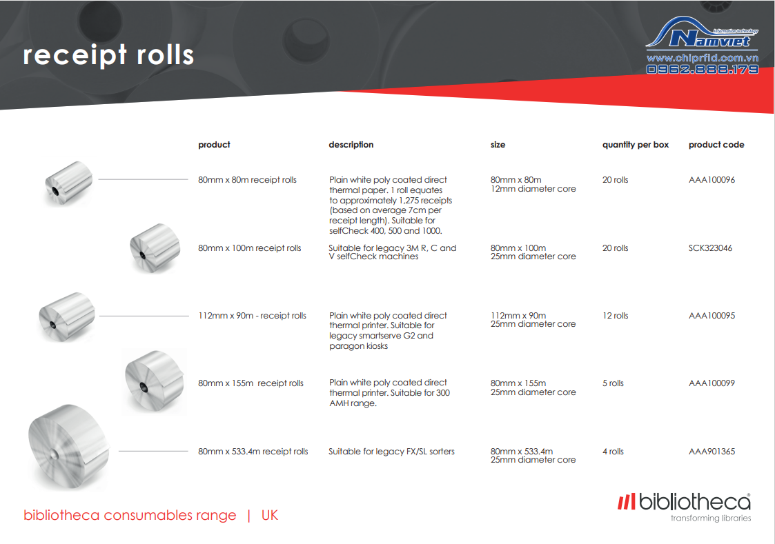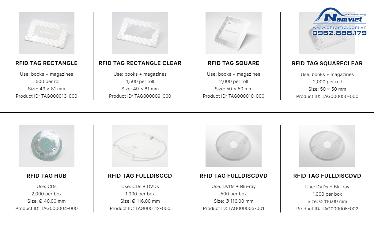 3. các mã sản phẩm Nhãn RFID Bibliotheca